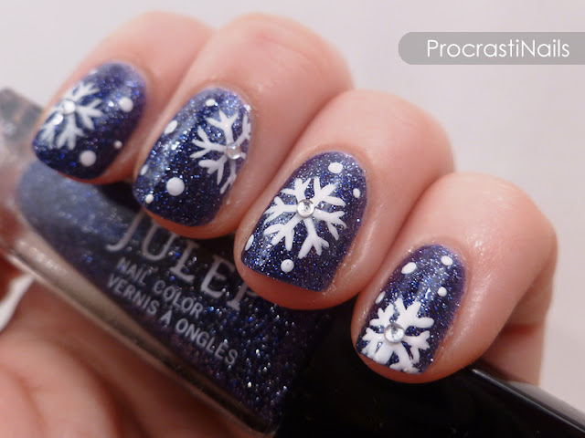 My second fill for The 12 Days of Christmas Nail Art Challenge is for snow/winter... For me, that immediately meant snowflakes! Snow is one of the best parts of the holidays, and there's nothing better than going for a walk when the weather is mild and there are fluffly clumps of snow falling around you.