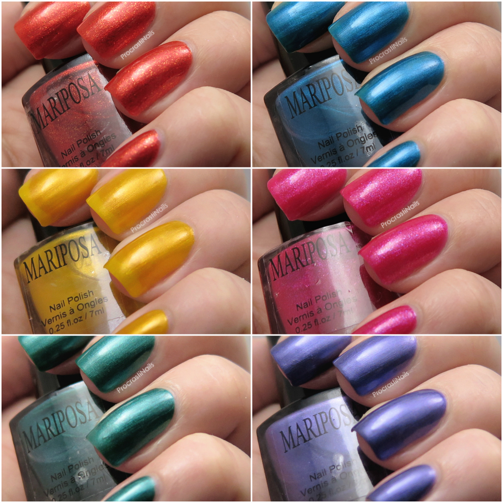 One of my favourite things to do on a day off is to go to the dollar store to look through what kind of supplies they have for nail art. They usually also have a stash of Essie and NOPI polishes that I can look through, as well as a section of cheaper brand polishes packaged into sets that I've never really given much thought to. One of those brands is Mariposa and last week I decided "Why not, let's pick some up and give them a try!" Let me tell you, I was pleasantly surprised!